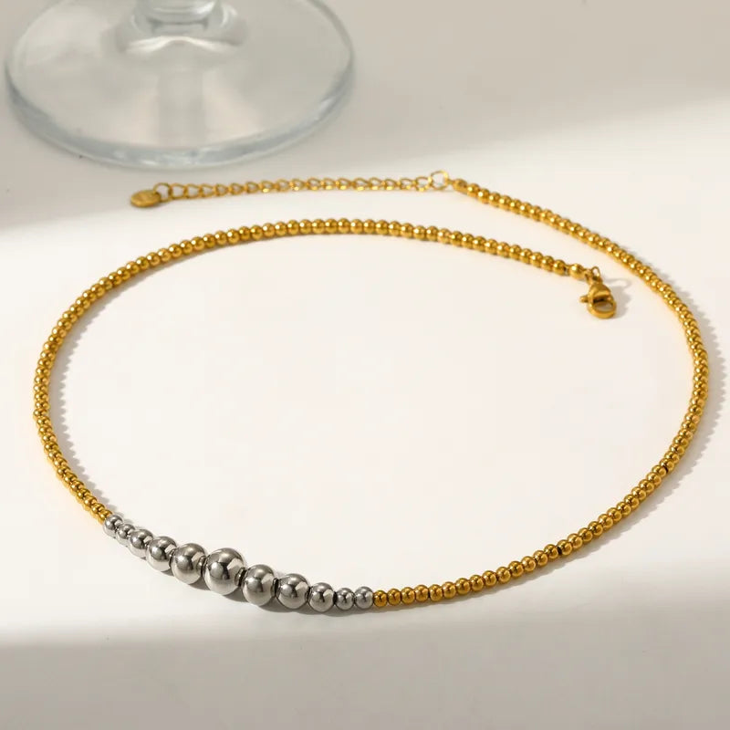 18K Gold Plated 304 Stainless Steel Vacuum Electroplating (In Furnace) Round Beaded Chain Necklace For Women