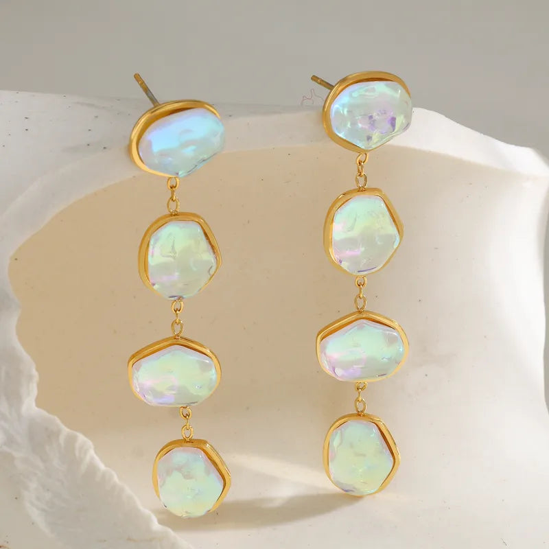 18K Gold Plated 304 Stainless Steel Vacuum Electroplating (In Furnace) Zircon Geometric Tassel Iridescent Earrings For Women Valentine's Day
