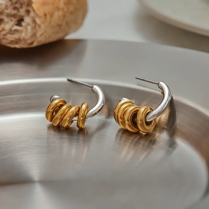 18K Gold Plated 304 Stainless Steel Water Plated C-Shaped Circle Mixed Color (Jewelry Metal Contrast Color) Earrings For Women Weekend Date Selfie
