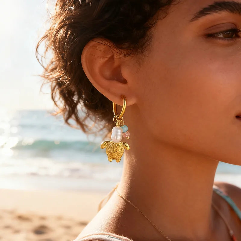 304 Stainless Steel Imitation Pearl Glass Tortoise Pearl PVD Coated Stone-Free 18K Real Gold Plated Earrings