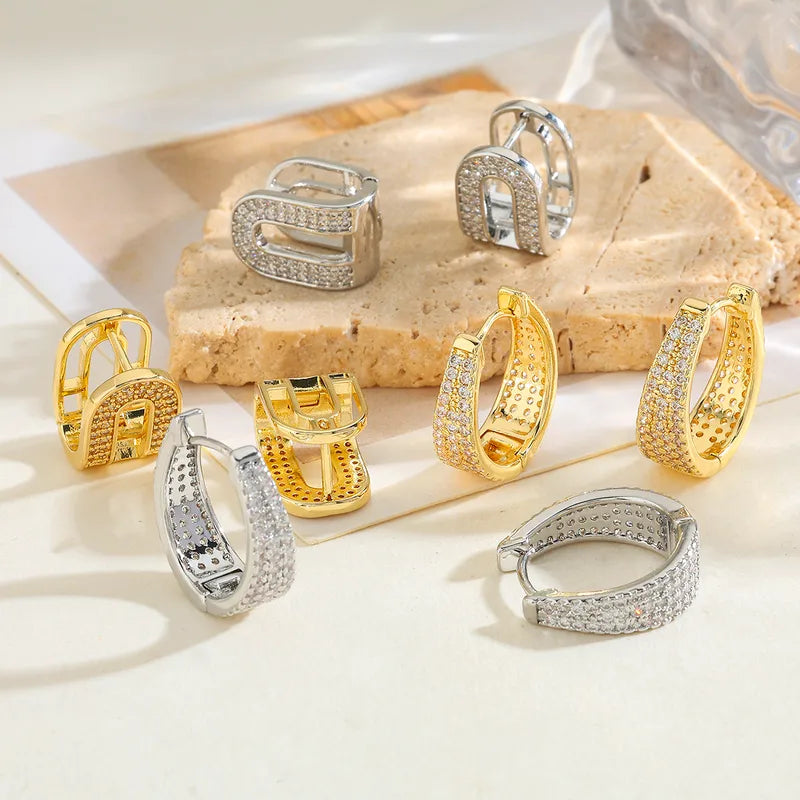 Circle Water Plated Copper Zircon (Jewelry) Waterproof Non-Fading Electroplated Earrings Studs For Women Shiny Elegant