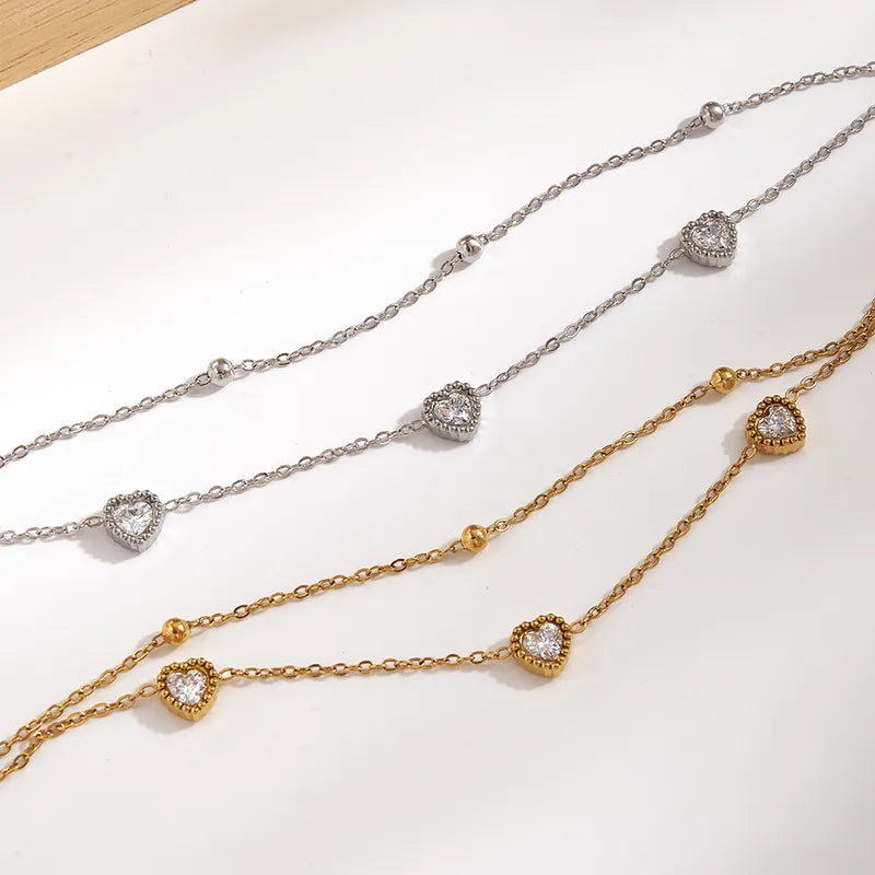 Classic 304 Stainless Steel Inner Electroplated Zircon Heart Double Layer Knot Bracelet Handmade Lobster Clasp Vacuum Electroplating