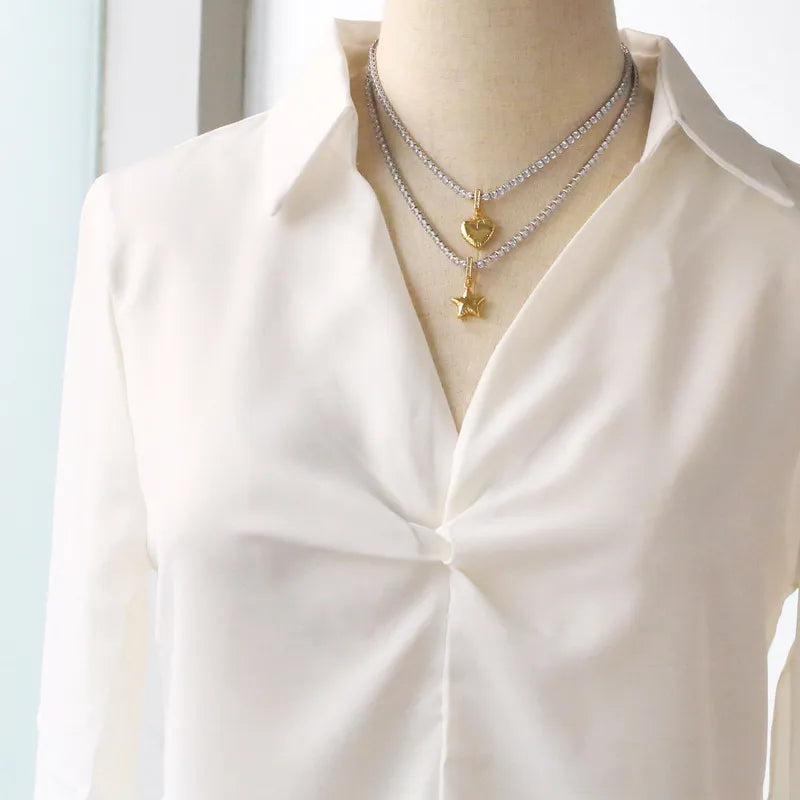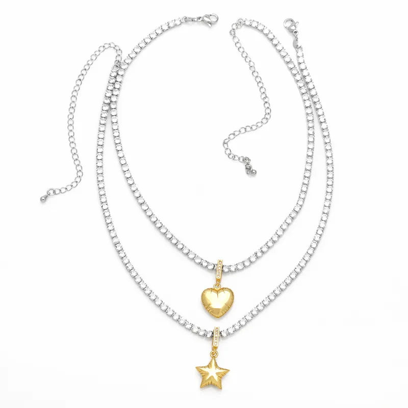 Copper 18K Gold Plated Simple Style Star Heart Shape Inlay Zircon Pendant Necklace