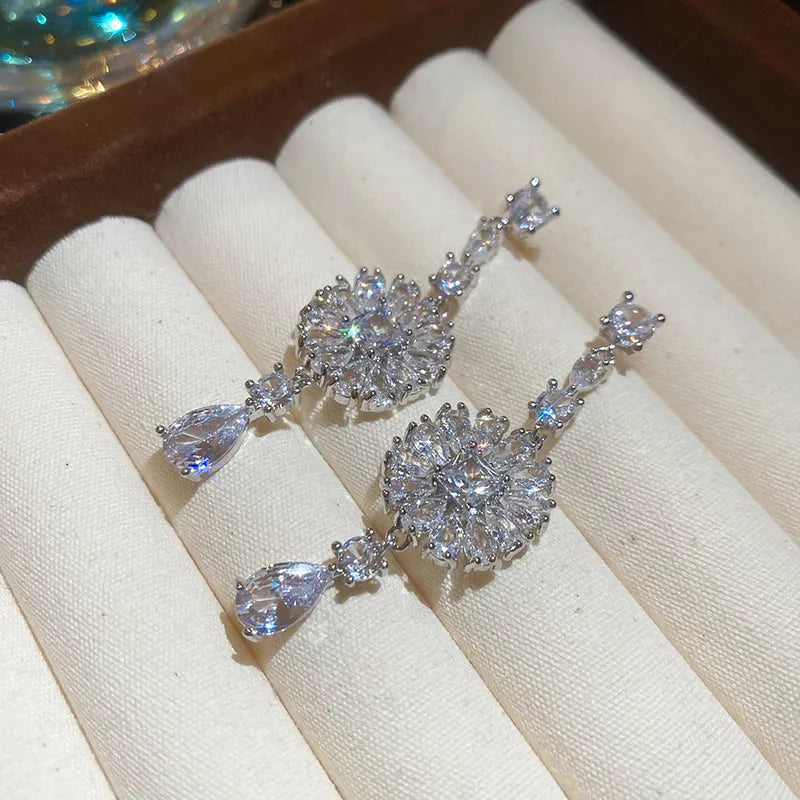 Elegant Round Silver Needle Zircon Tassel Earrings Luxury Feelings Court Style Women's Jewelry Fashionable Drop Earrings
