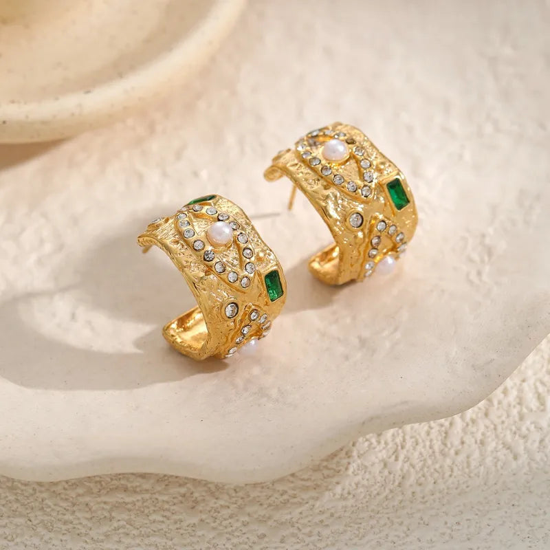 Fashionable Hammered C-Shape Earrings Women's Stainless Steel 18K Gold Plated High-End Feelings Studs Geometric Pattern Jewelry
