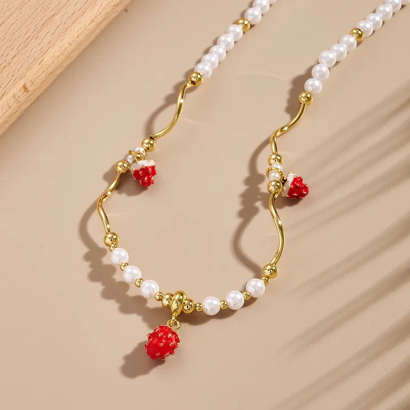 Fashionable Micro-Set Zircon Heart And Star Cherry And Butterfly Knot Necklace Handmade Polished Dipped Oil