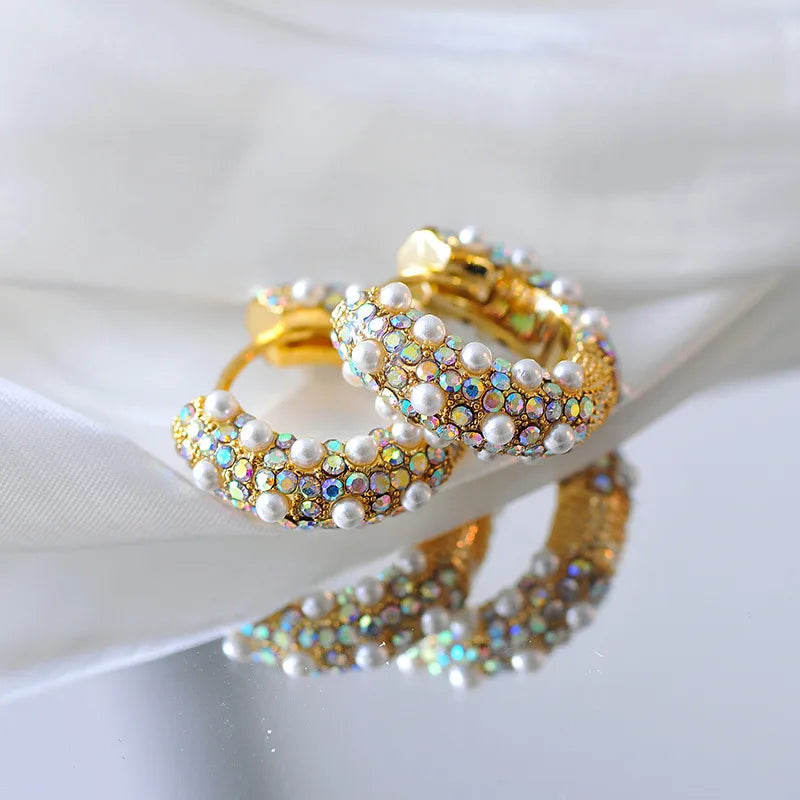 Fashionable Round Pearl Earring Studs Circle Design Luxury Women's Jewelry Earrings Copper Alloy Geometric Pattern 925 Silver