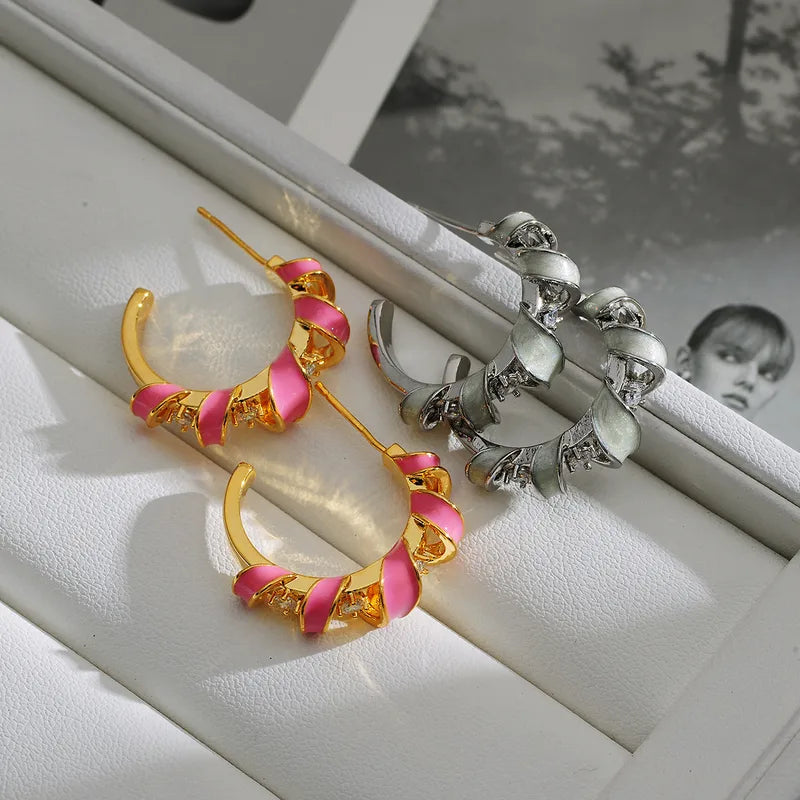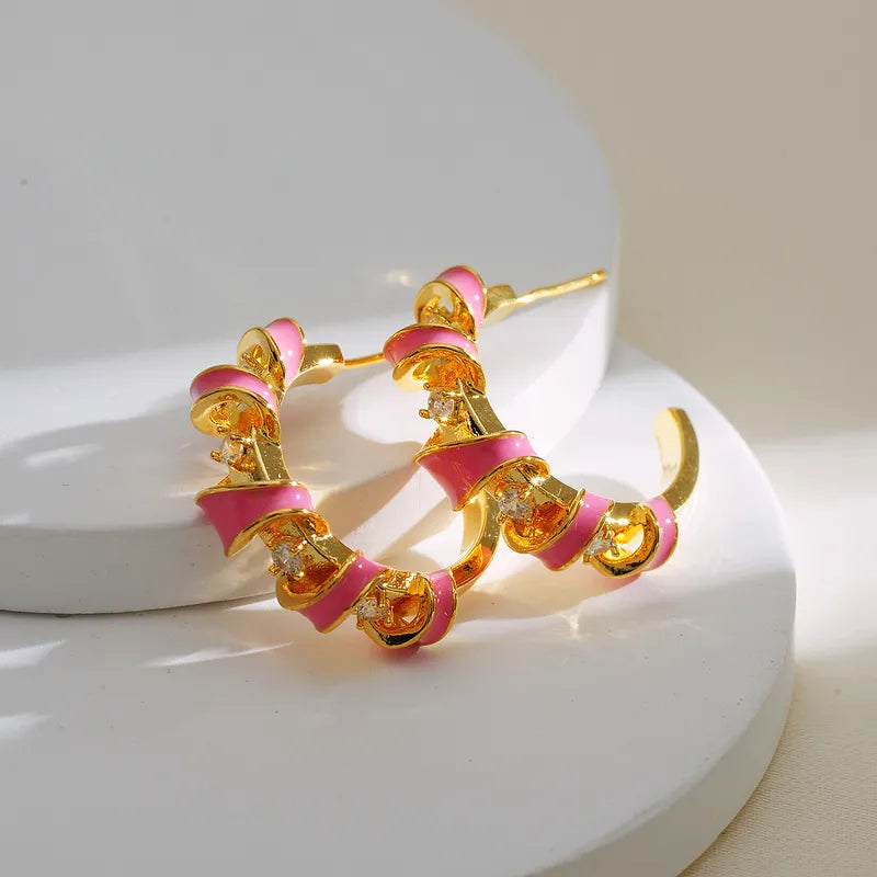 Fashionable Women's Earrings Elegant Atmosphere Copper Plated Real Gold Wrapped Zirconia Stones Versatile For Office And Date