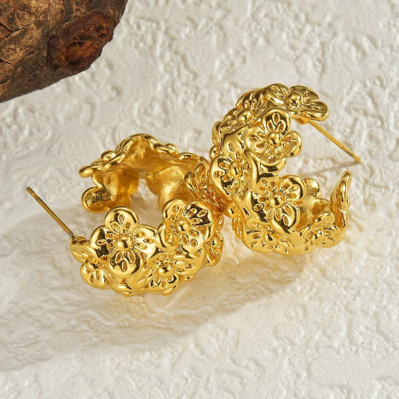 French Retro Irregular Pleated Texture Earrings With Glass Inlay Black Stud Earrings For Women