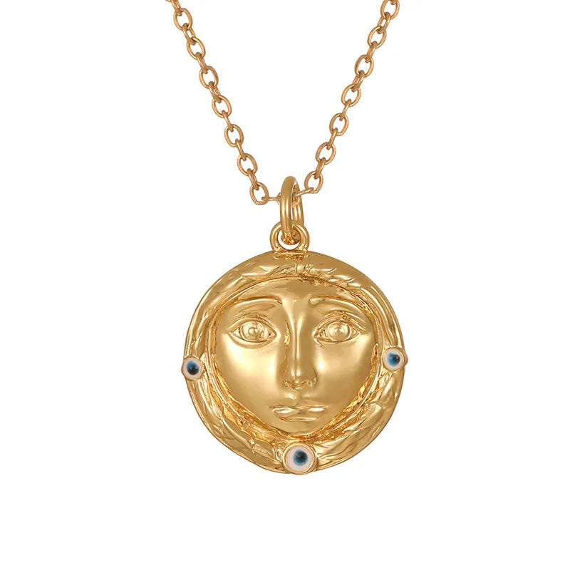 French Vintage Eight-pointed Star Pendant Necklace Titanium Steel Non-fading 18K Embedded Zircon Wave Pattern Jewelry For Women