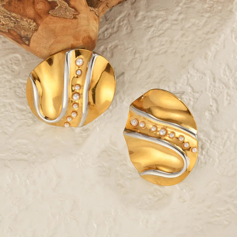 Geometric Stainless Steel Crystal Inlaid Earrings Studs Women's Jewelry