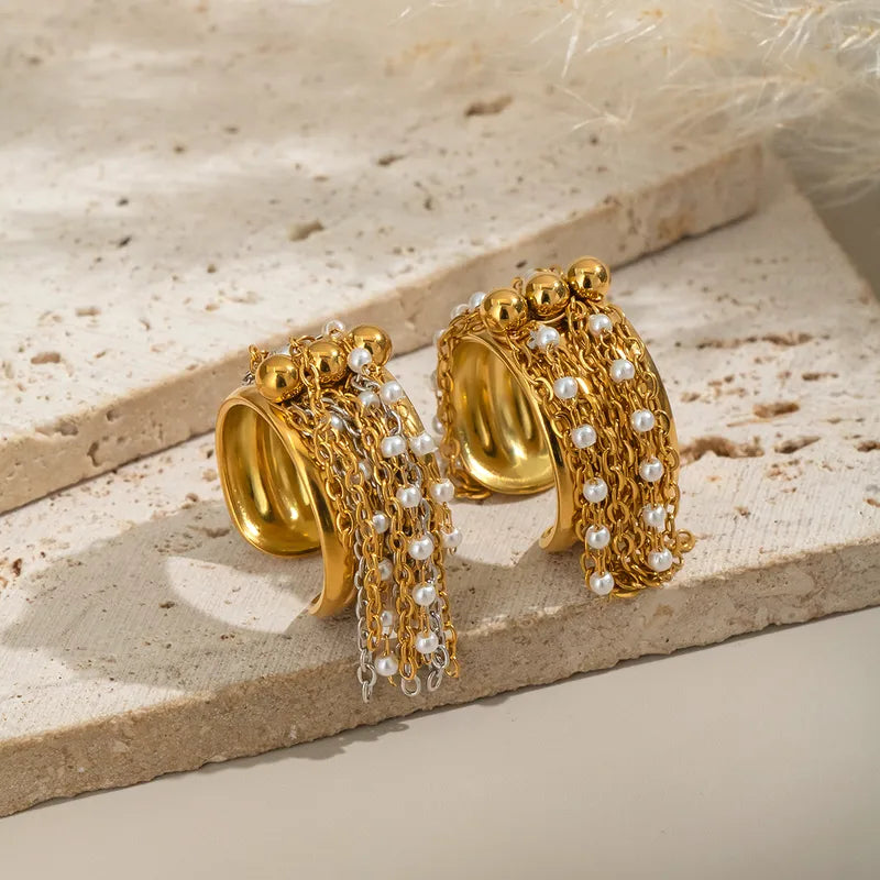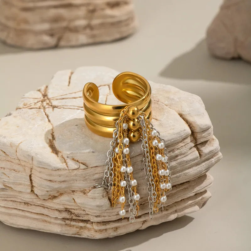 Geometric Trendy Tassel Ring Simple Fashion Hand Jewelry Stainless Steel High-End Feel 18K Gold Plated Adjustable Size For Women