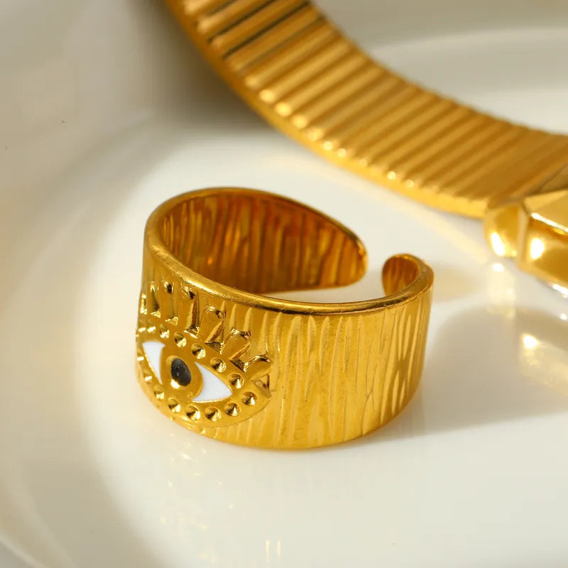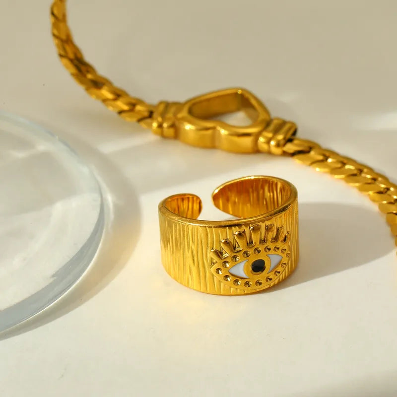 Halloween Funny Devil Eye Open Ring Stainless Steel 18K Gold Plated Adjustable Size Women's Ring Luxury And Artistic Style