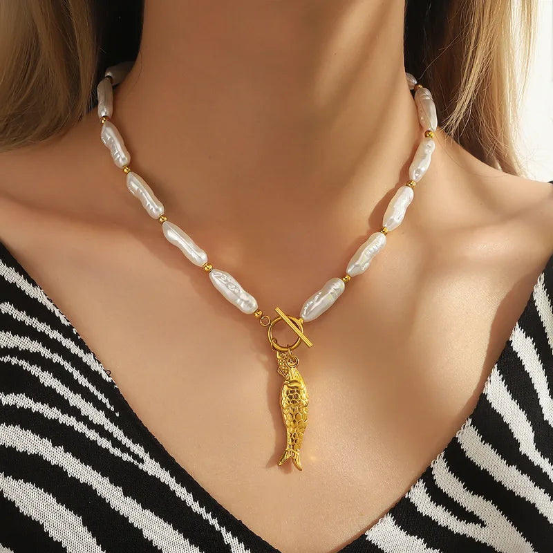 Handmade Titanium Steel Small Fish Necklace Stainless Steel 316L Pure Color Universal Casual Style For Vacation And Office