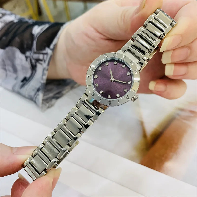 IBSO Gold Diamond Embedded Ladies Watch Small Dial Waterproof Fashionable Quartz Stainless Steel Band Round Shape Luxury Brand