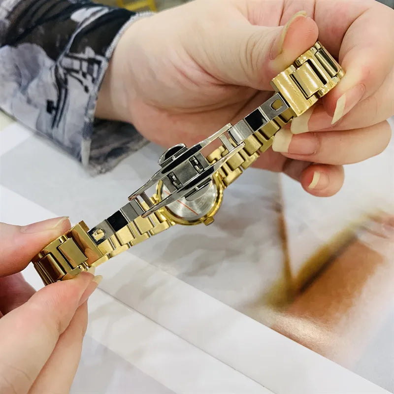 IBSO Gold Diamond Embedded Ladies Watch Small Dial Waterproof Fashionable Quartz Stainless Steel Band Round Shape Luxury Brand (Copy)