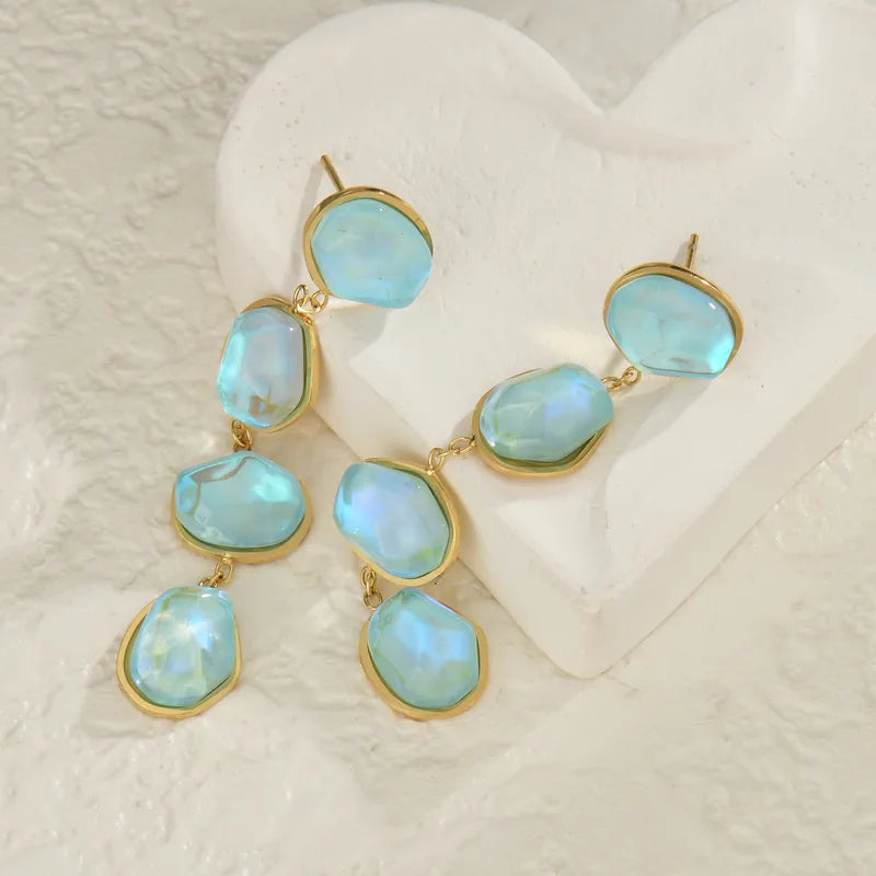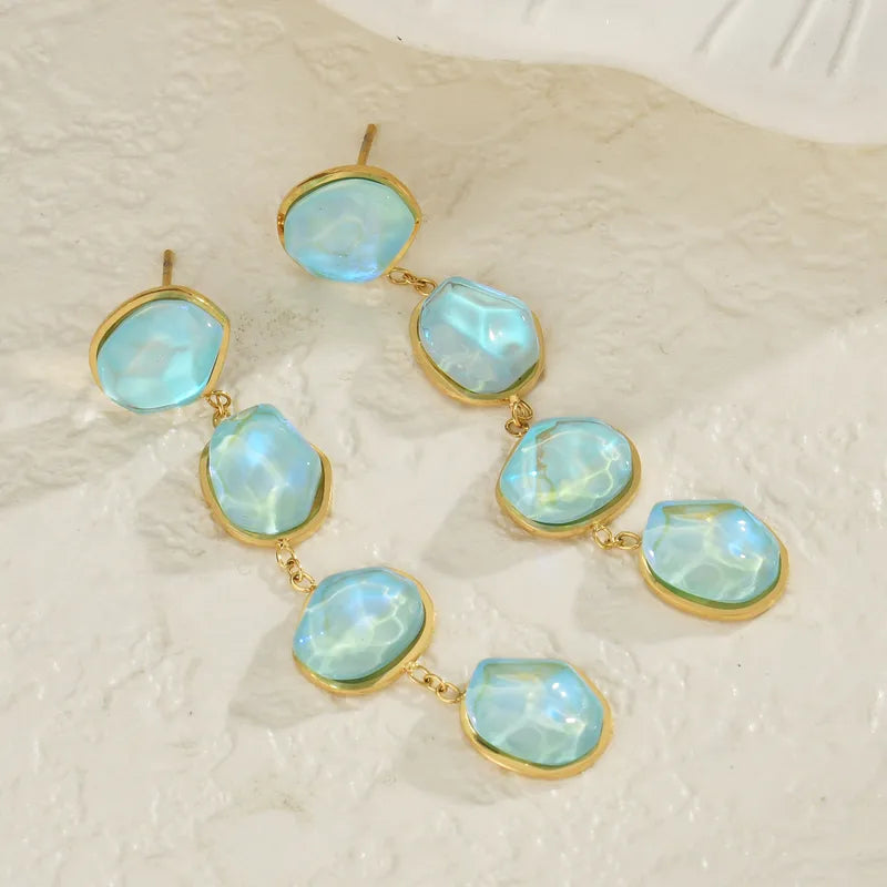 Long Tassel Earrings For Women, Stainless Steel Irregular Diamond Inlaid Black Geometric Crystal Hoops