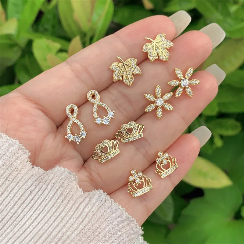 New Fashionable Ladies Earrings Copper Plated 18K Gold Set With Full Of Diamond Zircon Multi-Style Geometric Circle Heart Shaped