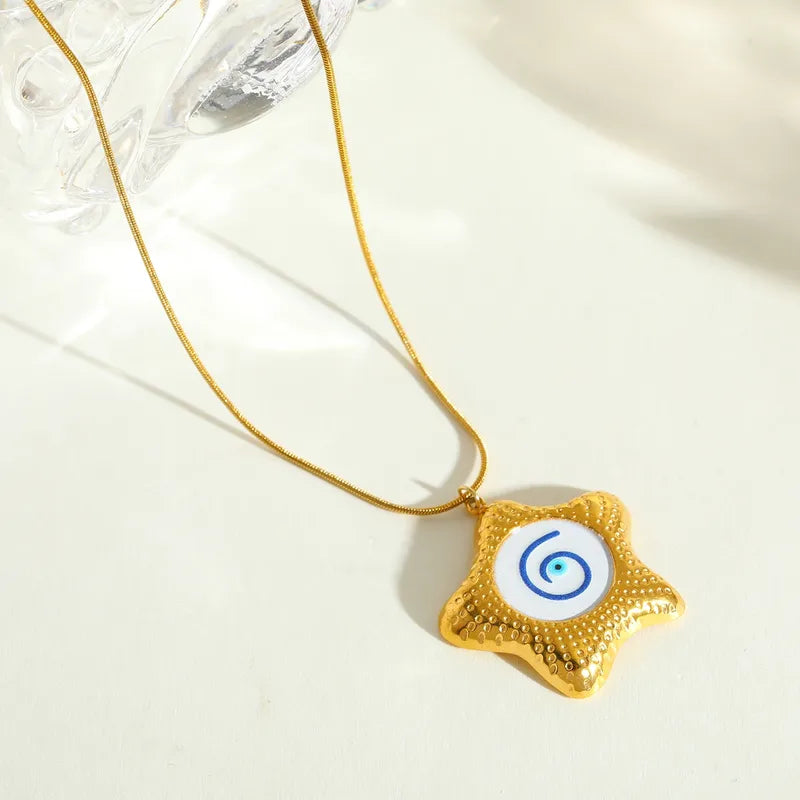 Novel Cute 18K Gold Plated Stainless Steel Starfish Pendant Necklace Drop Oil Technique Casual Elegant Simple Design Lobster Clasp