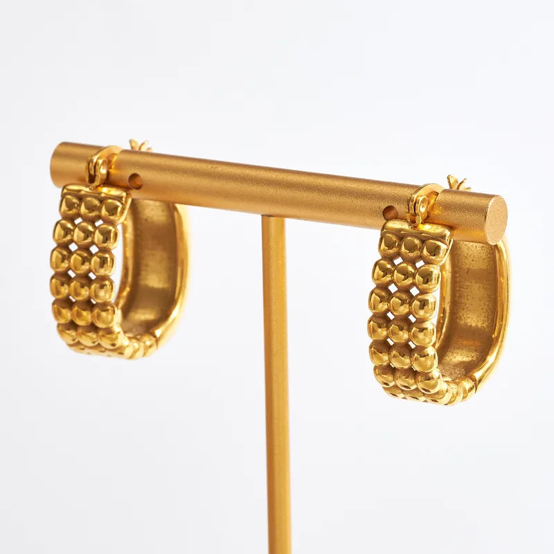 Real Gold Plated 304 Stainless Steel Furnace Electroplating Simple Grid C-shaped Earrings Polished Lines Vacuum Electroplating