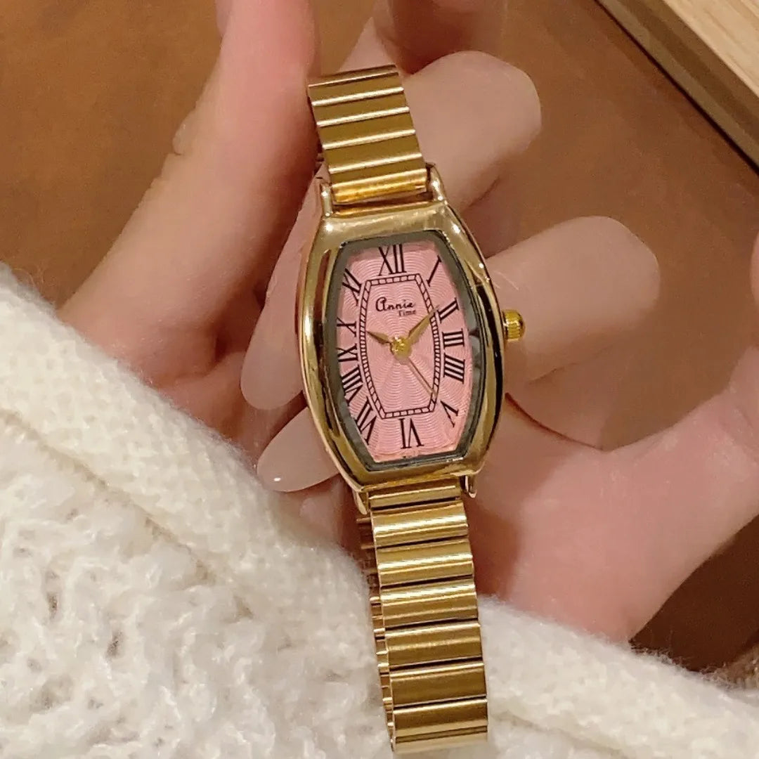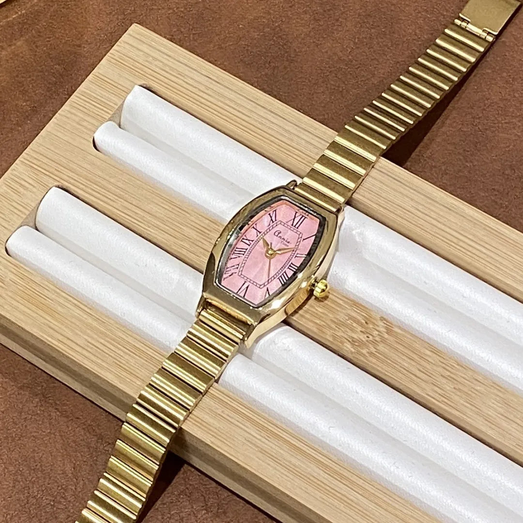 Retro Luxury Bamboo Steel Band Women's Quartz Watch Vintage Barrel Shape Wristwatch For Office Commuting Elegant Timepiece