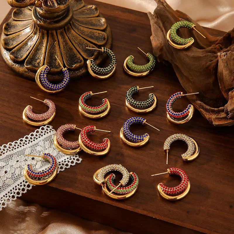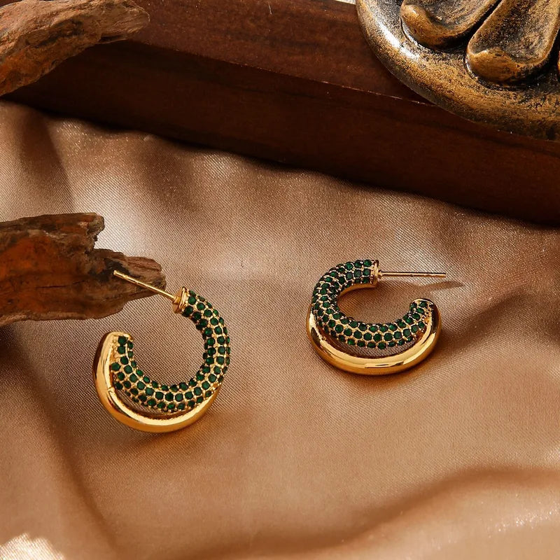 Stainless Steel Geometric C-Shaped Diamond Embedded Earrings Women's High-End Non-Fading Titanium Steel Jewelry Ear Decor