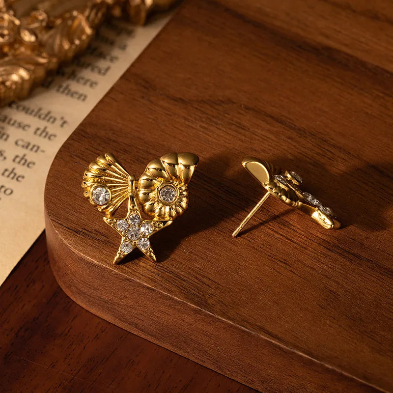 Titanium Steel Star Shell Earrings Unique Design Simple Stainless Steel Stud Earrings Suitable For Beach Vacation