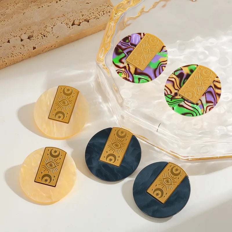 Vacuum Electroplating (In Furnace) Plated 18K Real Gold Round 304 Stainless Steel Acrylic Casual Elegant Vintage Electroplated Stud Earrings