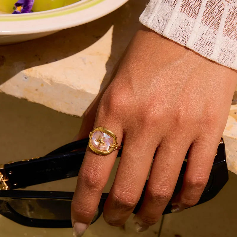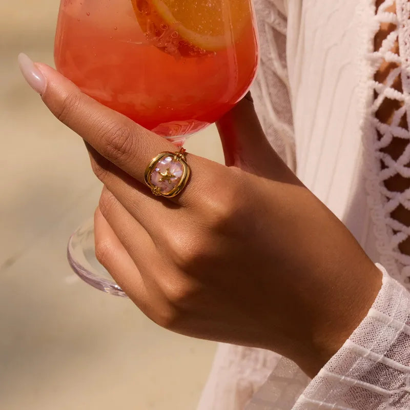 Wholesale Jewelry Casual Cute Hawaiian Geometric Starfish 304 Stainless Steel Natural Broken Shell Glue 18K Gold Plated Plating Inlay Open Rings